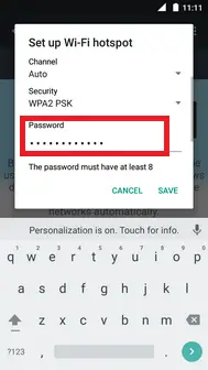 8. Delete the existing text under password and enter a new text as a password for your hotspot.